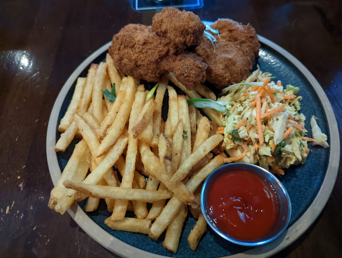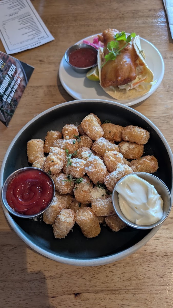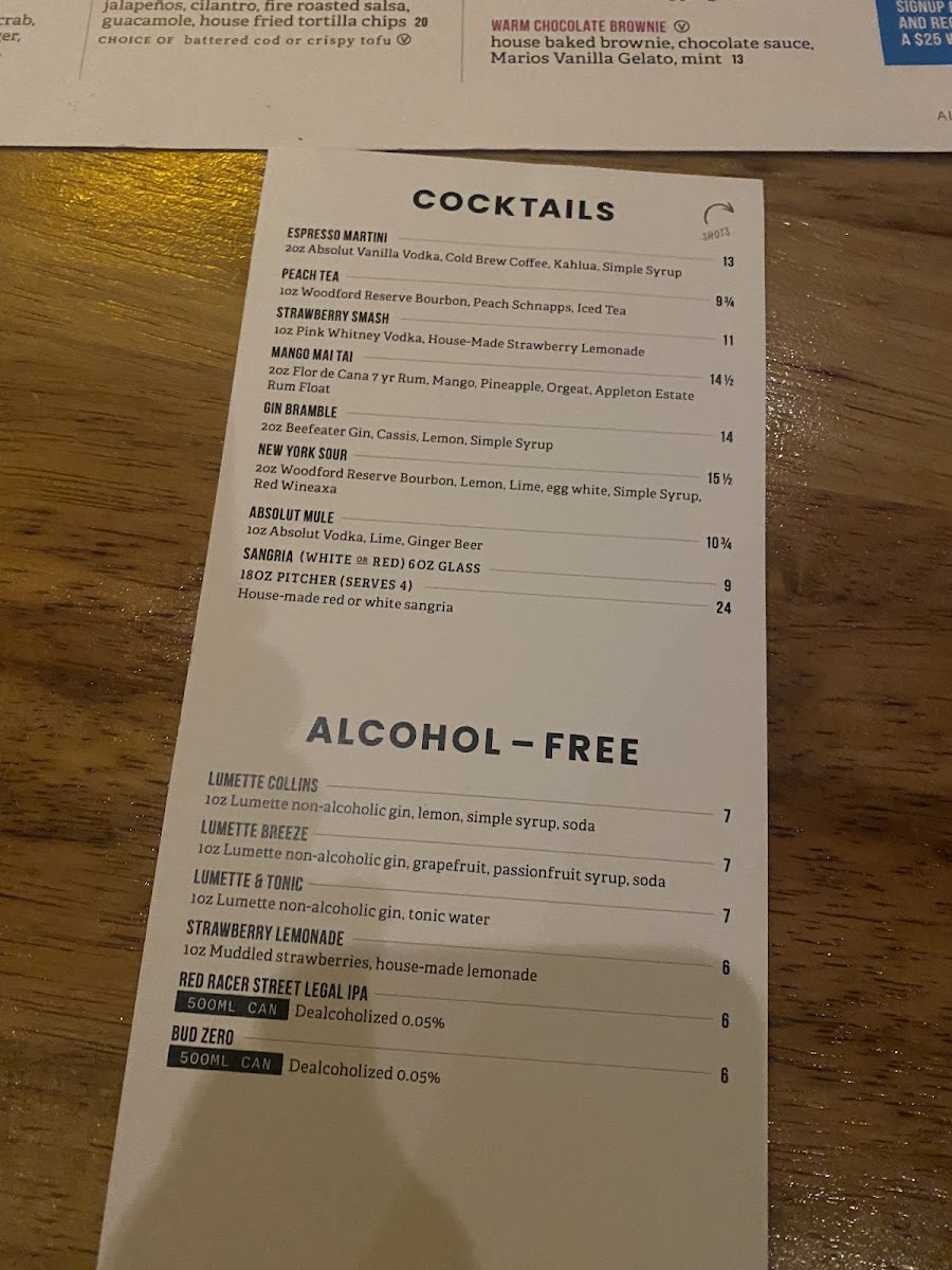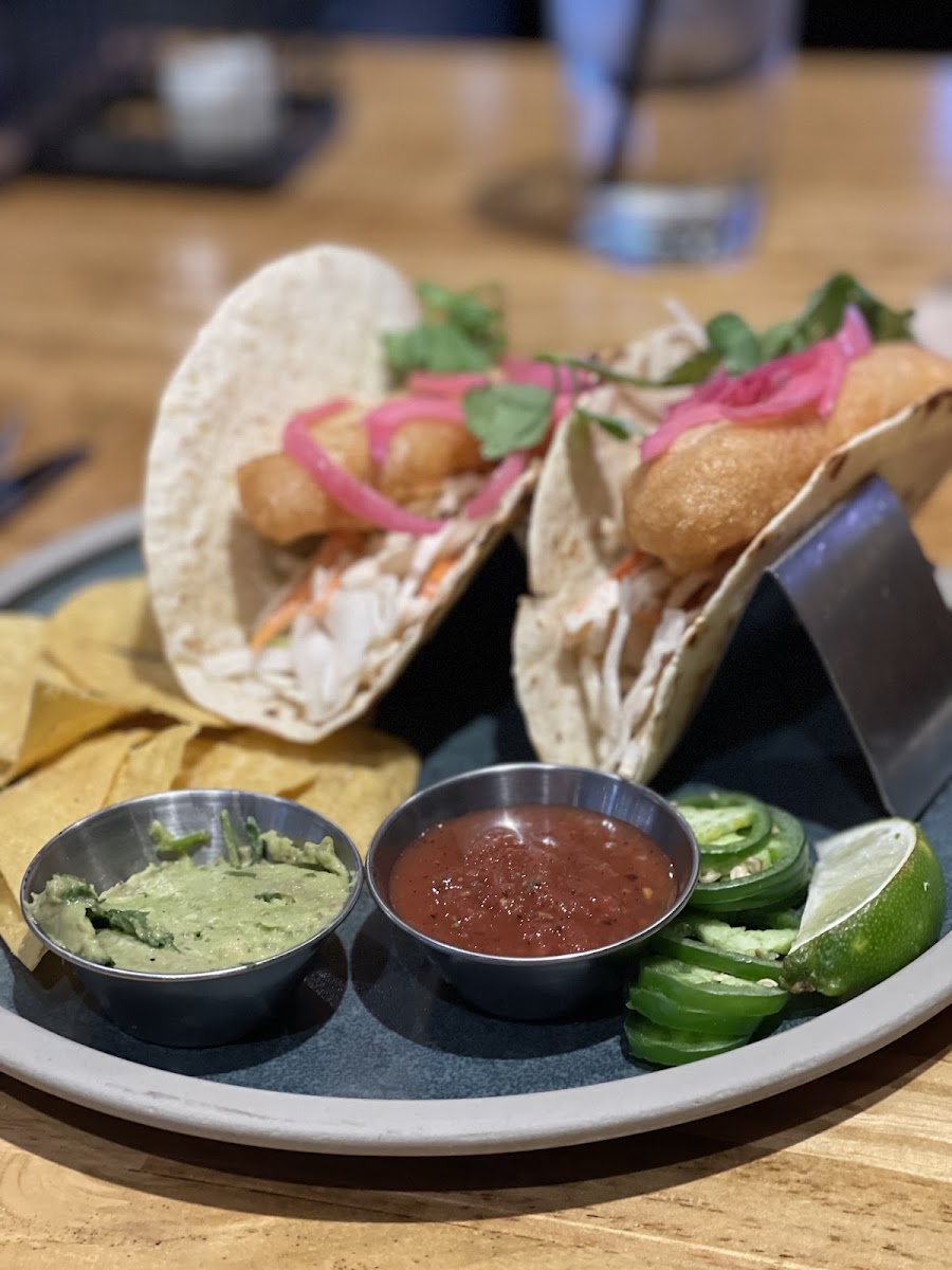 The menu showcases a variety of American classics with a twist, making it a culinary adventure for any food lover. One standout dish is the BAJA TACOS, featuring your choice of crispy battered cod or crunchy tofu, topped with zesty chipotle aioli and a medley of fresh ingredients including pickled red onions and jalapeños, served alongside house-fried tortilla chips for an added crunch. Another must-try is the ENGLISH STYLE FISH & CHIPS, where tender, beer-battered cod tails rest atop a bed of perfectly salted fries, accompanied by house-made coleslaw and tartar sauce, all designed to whisk you away to the English seaside with every bite.